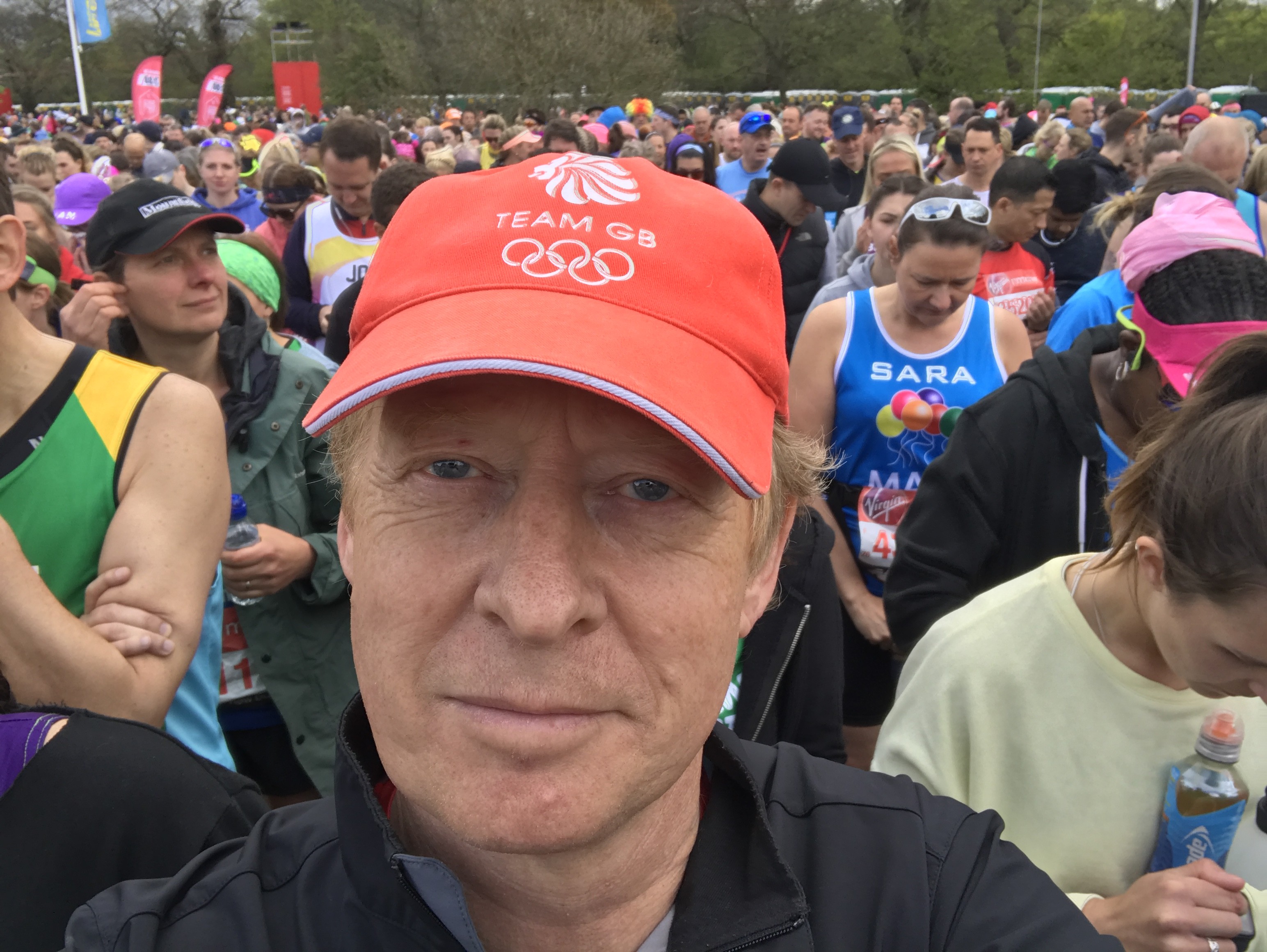 The hardest part of the start is the waiting. I took off my jacket and track suit and dropped my numbered kit bag at the correct truck from the long row of lorries lined up in the massive waiting area in Greenwich Park. Luckily for us overall, the day was cool, with no wind and no rain. But cool means cold when one is standing around waiting. And waiting. The organisers did their best to keep us entertained and before long we got to see Andy Murray get the race underway but my start time was still 45 minutes away (I generously gave Sir Mo Farah a head start). Eventually it was time for the Zone 6 ‘mass start’ thousands to line up. I can see the quiet determination on my face, tinged with fear, on the selfie I took as we got ready to go. Race time!